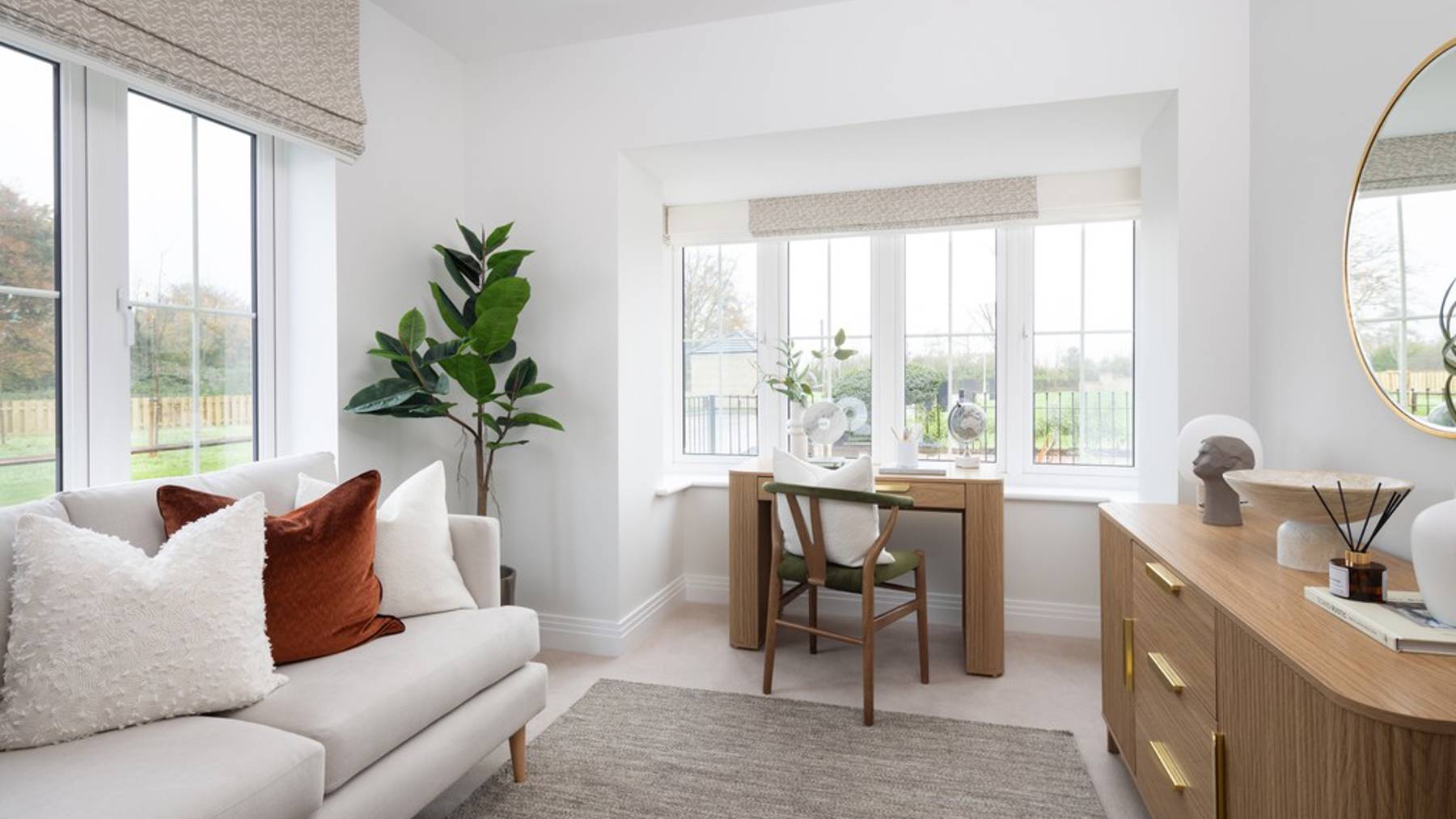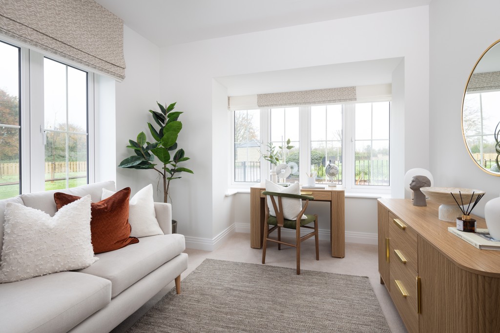 Characterised by its light and space, The Rowan is a family home to be reckoned with. Downstairs, the triple aspect, front-facing sitting room - complete with French doors to the garden - and dual aspect study, both have bay windows, letting in plenty of natural light. The spacious kitchen/dining room also has two sets of French doors opening out to the garden, and there is a utility room for extra convenience.